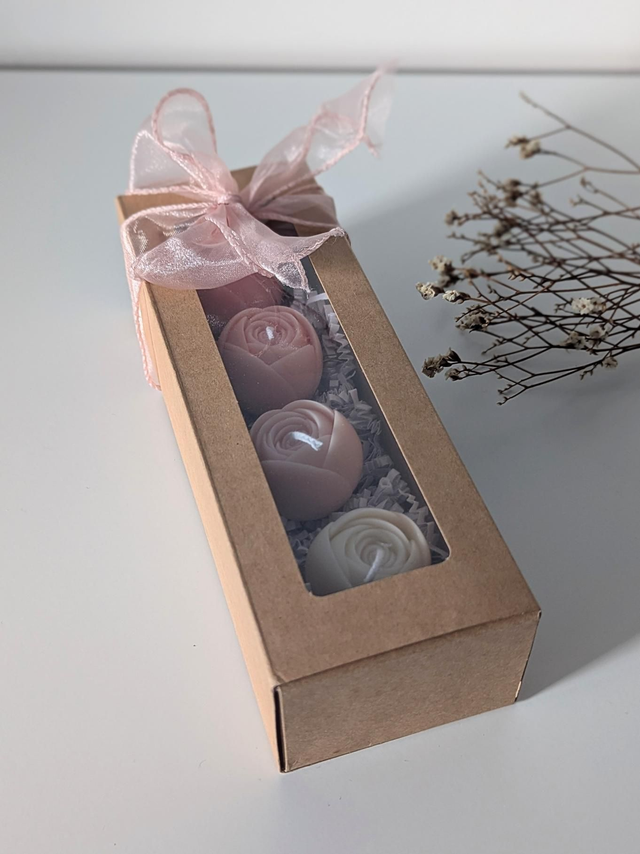 Créez une ambiance enchantée avec notre coffret de bougies moulées en forme de fleur roses ! 🎄🎅